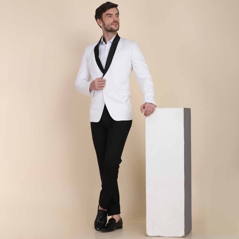 Men White & Black Solid Tuxedo 2 Piece Suit