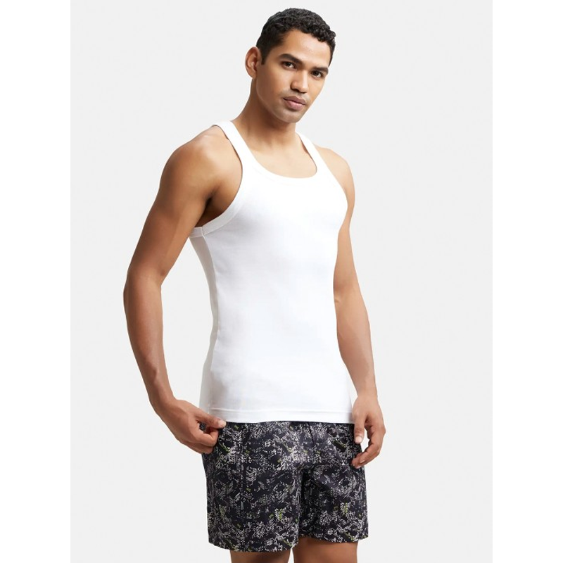 Combed Cotton Rib Square Neck Gym Vest with Graphic Print