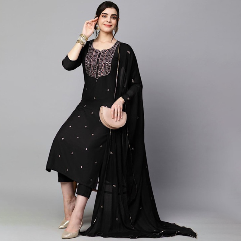 Floral Embroidered Regular Sequinned Kurta With Salwar & Dupatta