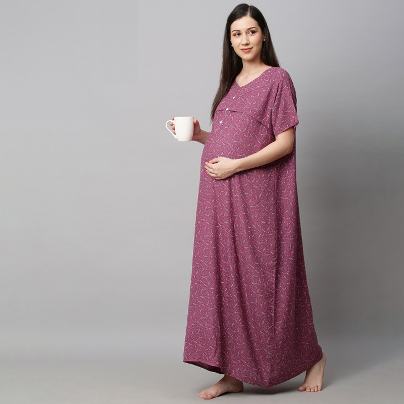Purple Printed Maxi Maternity Sustainable Nightdress