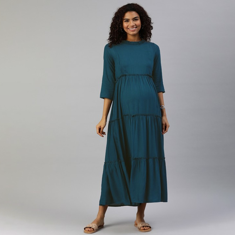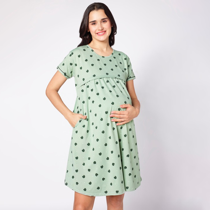 Women Typography Printed Cotton Maternity T-Shirt Dress
