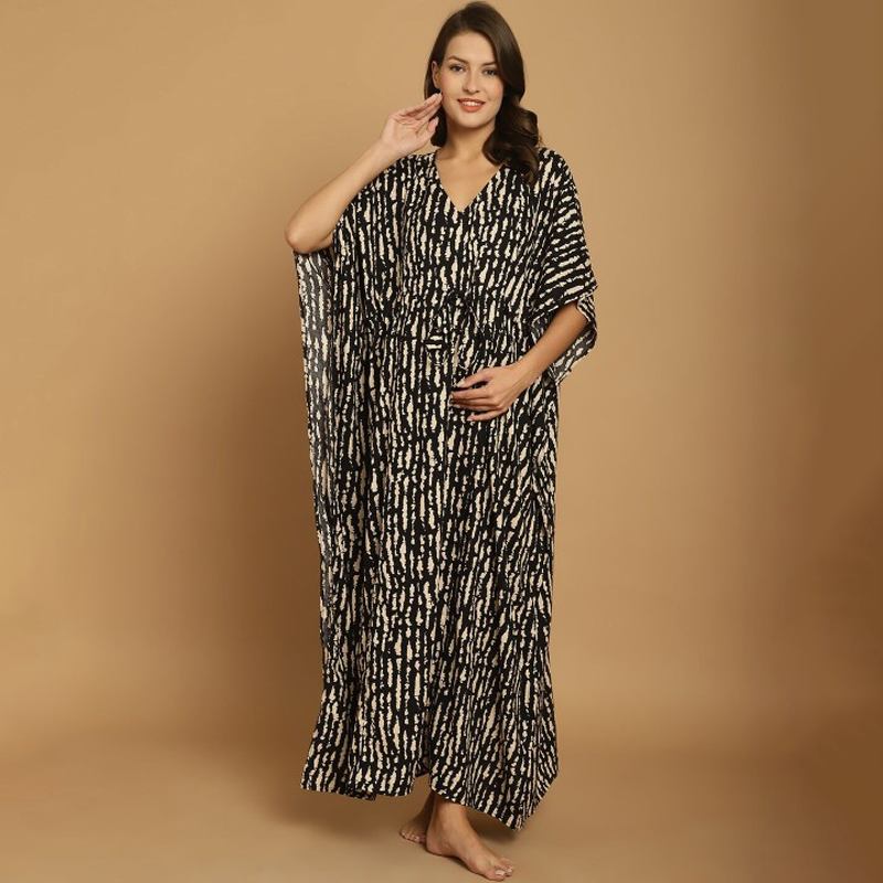 Purple & White Printed Cotton Maternity & Feeding Nightdress