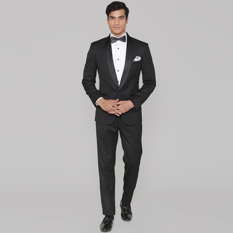 Men Black Solid Slim Fit Tuxedo Suit