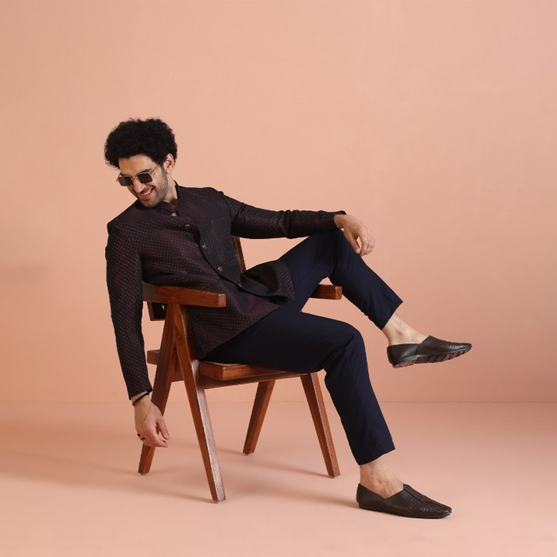 Men Self Design Jodhpuri Slim Fit Bandhgala Blazer Suit