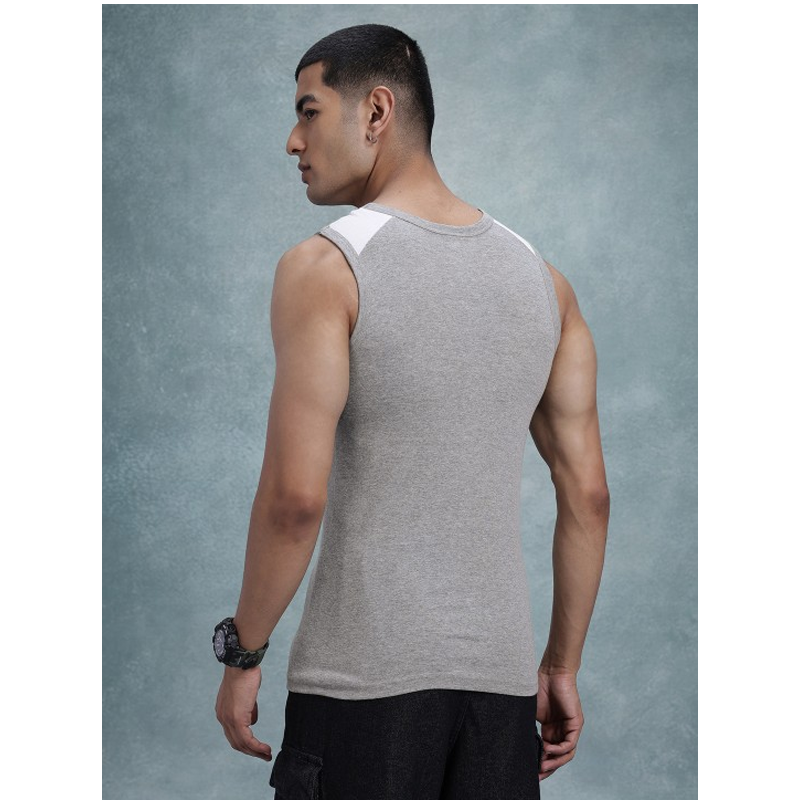 Combed Cotton Rib Square Neck Gym Vest with Graphic Print
