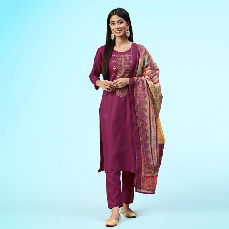 Embroidered Unstitched Kurta & Trouser With Dupatta Dress Material